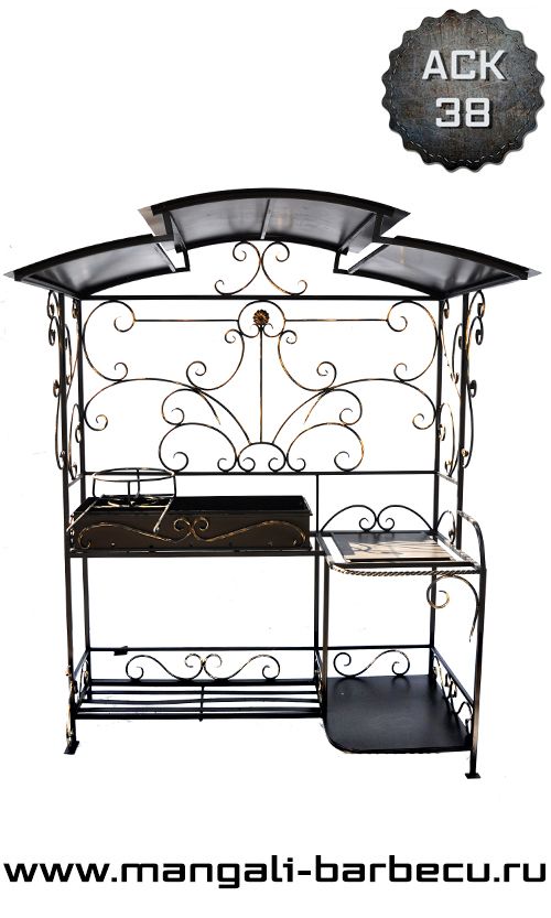 Мангал украшает множество стильных деталей, которые выкованы вручную.