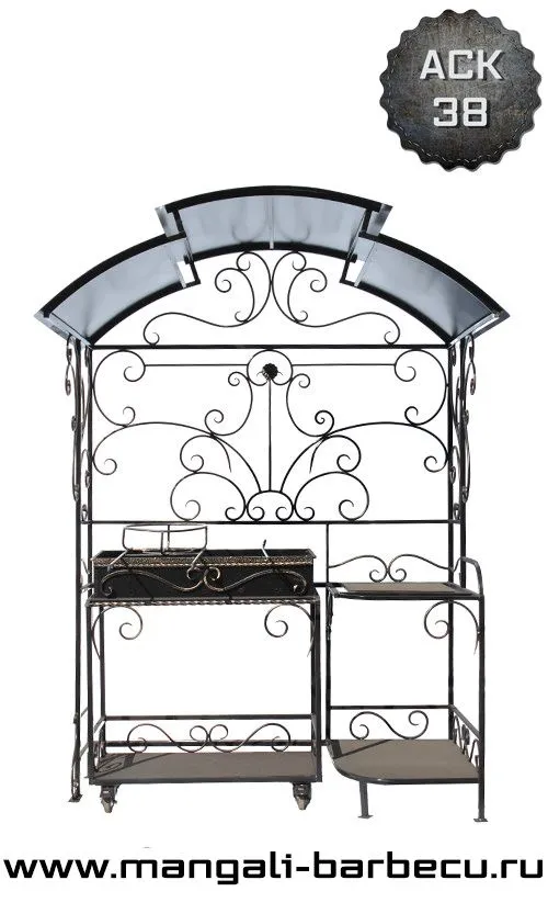 Мангал украшает множество стильных деталей, которые выкованы вручную.