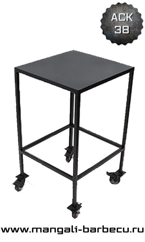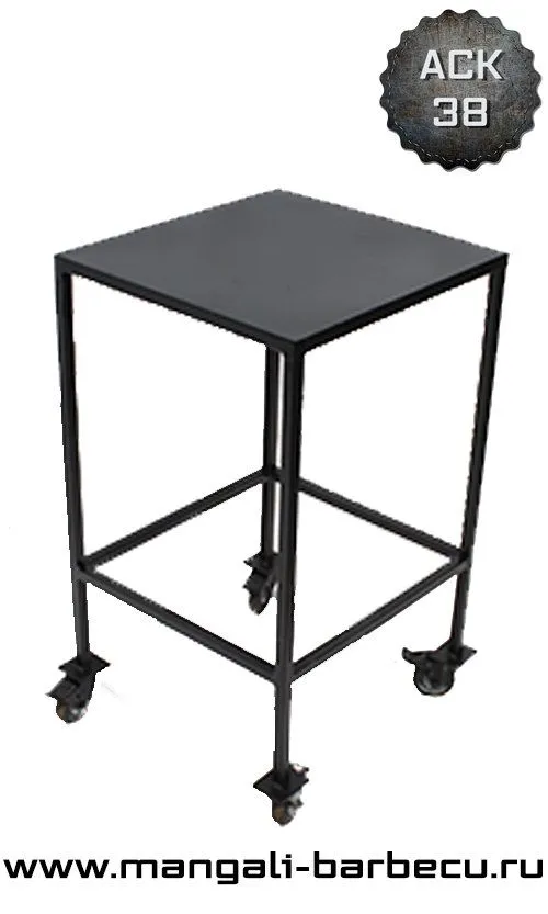 Представляем вашему вниманию "Столик примангальный на колесах АСК-38". Выполнен он в форме небольшого столика - подставки, что дополняет любой кованный мангал. Многофункциональные вещи очень удобны, каким и является данный передвижной кованный столик. Этот столик с кованными украшениями на колесиках украсит интерьер вашего дачного участка. Он очень удобен и красив, привлекает своей простотой. Столик декорировен элементами художественной ковки. Купив этот стол-подставку для шампуров, пасуды и другого у вас, сразу отпадет вопрос, куда поставить горячее аппетиное блюдо.