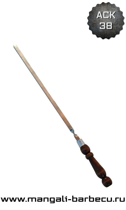 Шампур ручной работы из нержавеющей стали с деревянной ручкой, длина рабочей поверхности 47 см. Материал рукоятки береза, что гарантирует ее долговечное использование, покрытие ручки олифа.